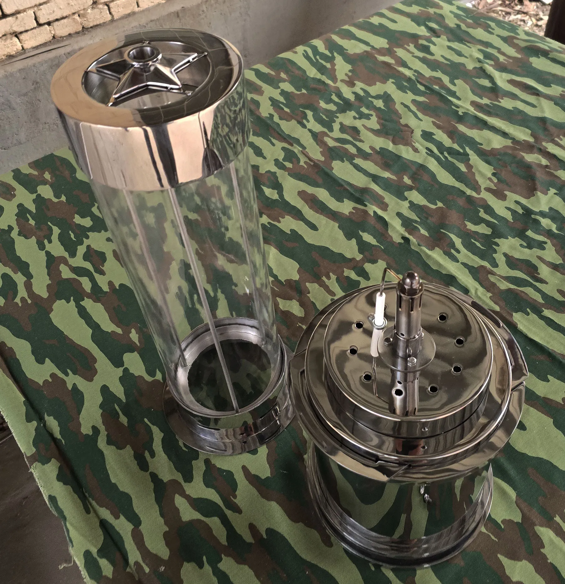 Материл корпуса капсулы – качественная нержавеющая сталь полированная до зеркального блеска, модуль ветрозащиты – кварцевое стекло. Топливный картридж капсулы – это стандартный газовый баллончик по типу походного - туристического для обогрева кемпинга.